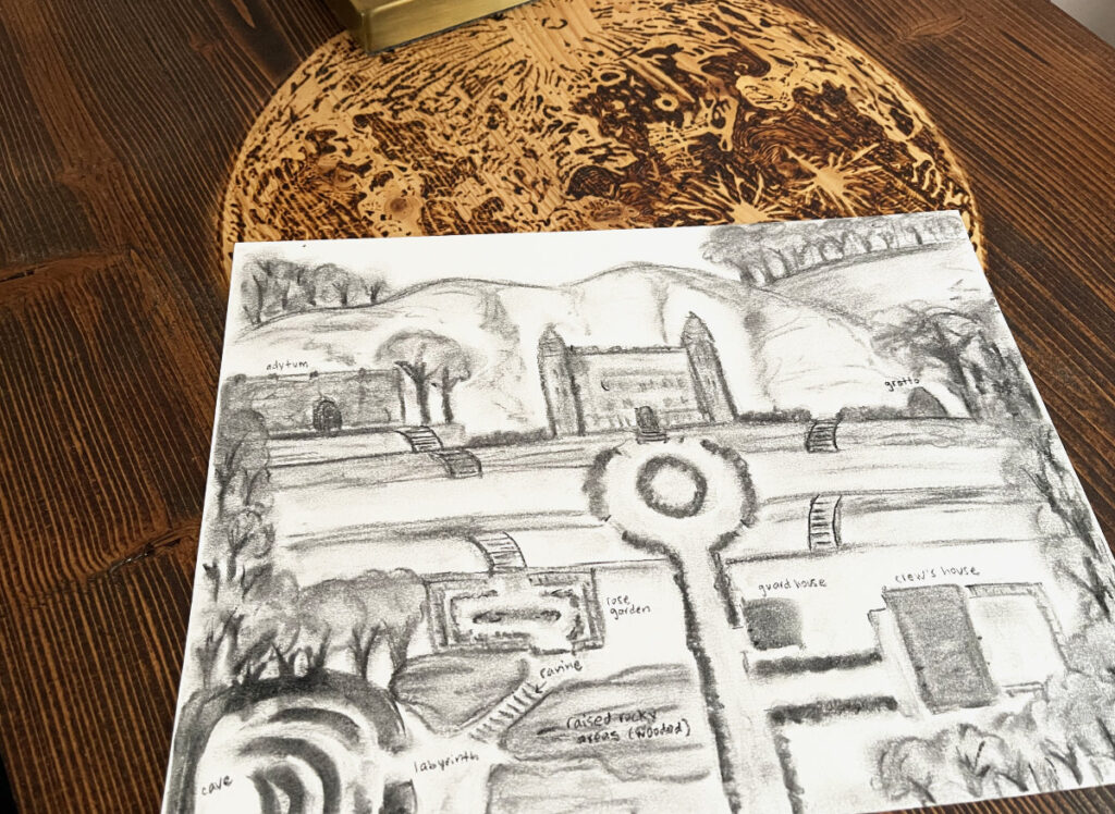 In between the first and second drafts of The Magician and the Labyrinth of Yesterdays, I needed a visual for the setting, Harrowfell Hall. It wasn’t purely for atmosphere; it was also a practical way to map the space, so I could track where characters were wandering as they solved the mystery of the haunting (while engaging in romantic shenanigans, of course).
