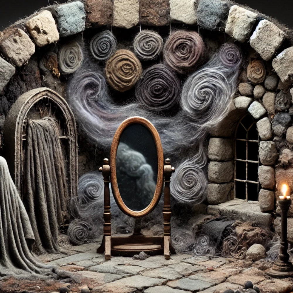 With a clipped nod, she led Arcanus deeper into the crypts where a narrow mirror stood propped against the wall.